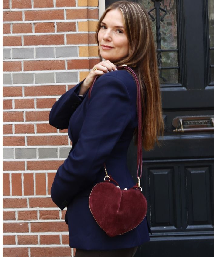 Deze superleuke Abby hartvormige handtas met luipaardprint is vervaardigd van 100% suède leer en steelt gegarandeerd de show. De tas heeft een ritssluiting rondom, goudkleurige hardware en wordt geleverd met een afneembaar en verstelbaar lang hengsel, zodat je hem ook comfortabel als schouder- of crossbodytas kunt dragen.