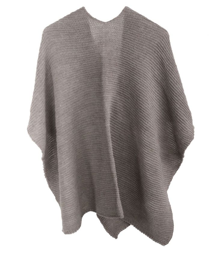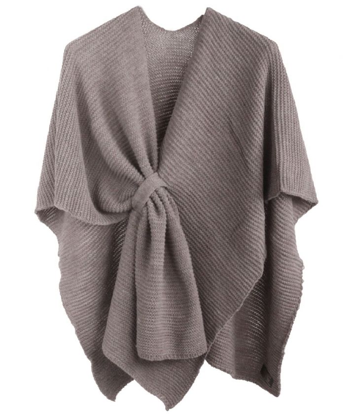 Taupe-grijze alpaca-blend omslagdoek met aan de voorkant een lus waardoor de omslagdoek op zijn plaats blijft hangen.