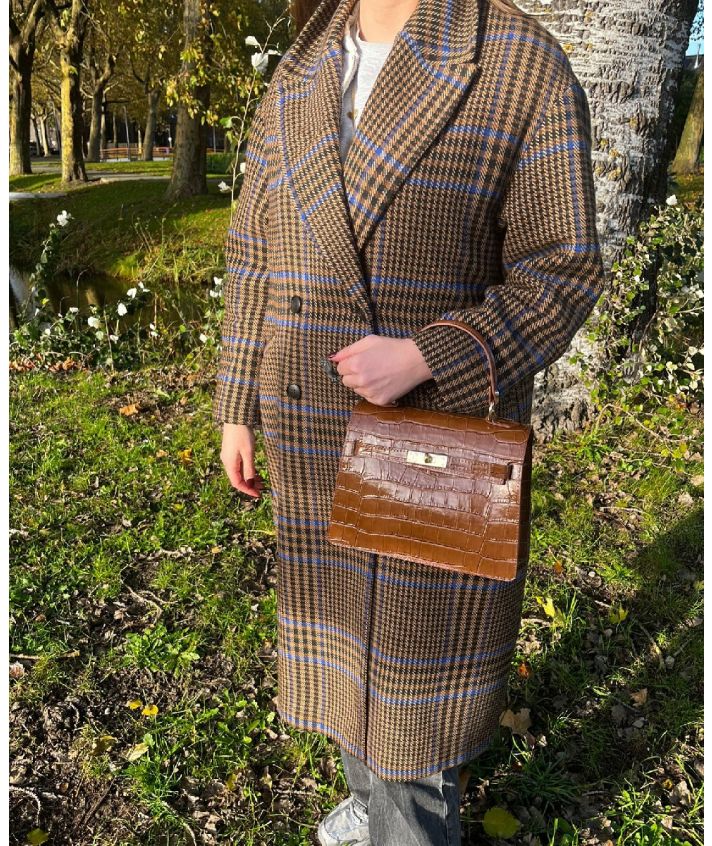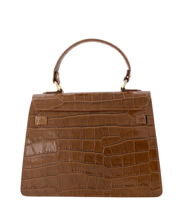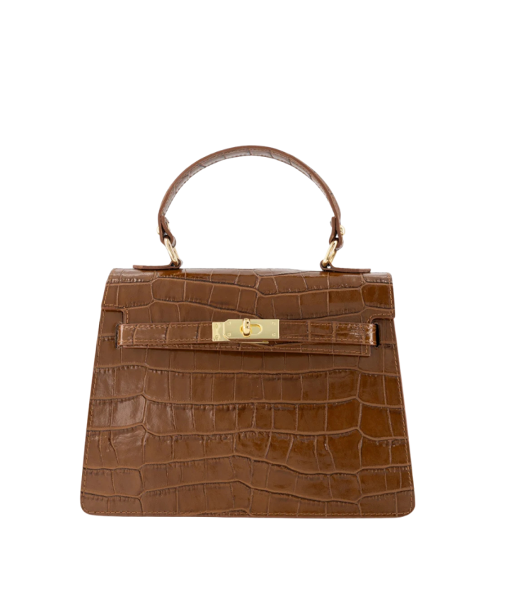 De Evi handtas in bruin is gemaakt van hoogwaardig echt leer met een subtiele croco-structuur. De stijlvolle draaisluiting met goudkleurige hardware geeft de tas een chique, tijdloze uitstraling.