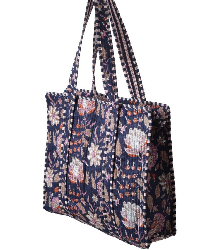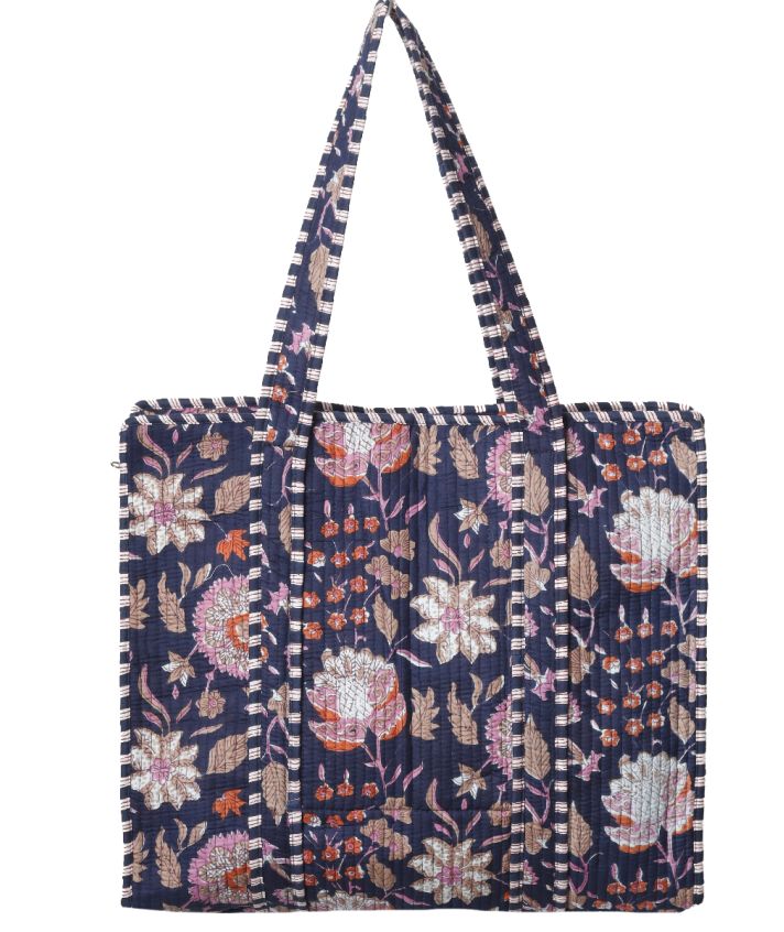 Stijlvolle en lichtgewicht shopper met bloemenprint in marineblauw is ideaal voor elke dag. Dankzij het ruime formaat en het handige binnenvakje houd je je spullen overzichtelijk en binnen handbereik. De binnenkant is gevoerd met dezelfde print, wat zorgt voor een mooie, luxe afwerking.