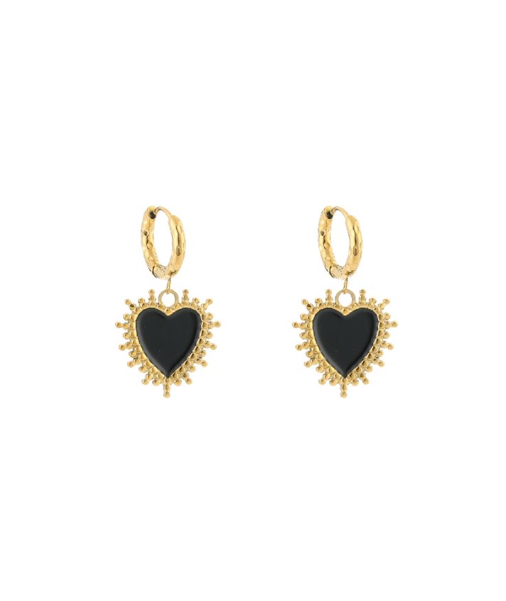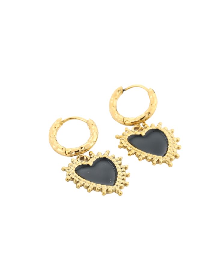Goudkleurige oorringen met daaraan een hartjes hanger.