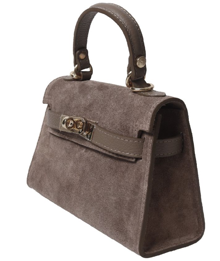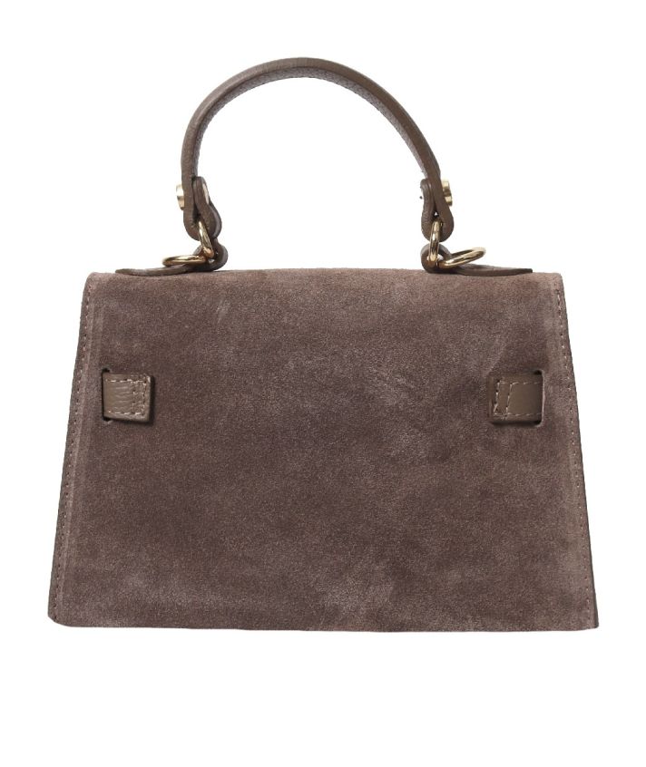 De Livia tas in taupe is gemaakt van zacht suède en afgewerkt met grain leren handvatten en band. Deze combinatie van materialen geeft de tas een luxe en tijdloze uitstraling.