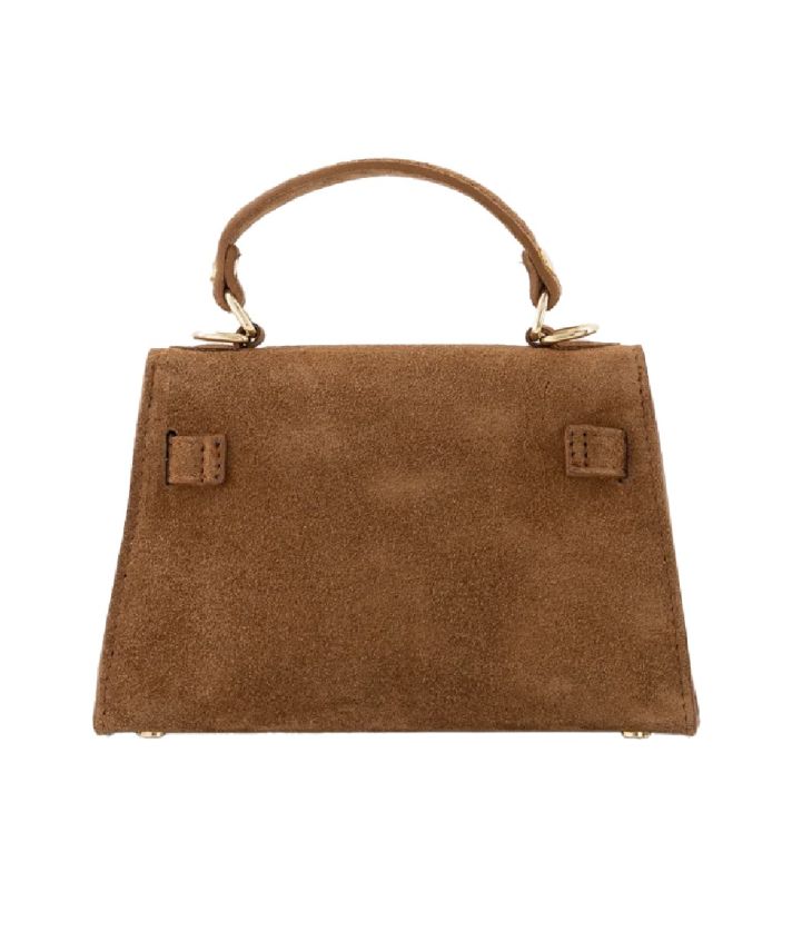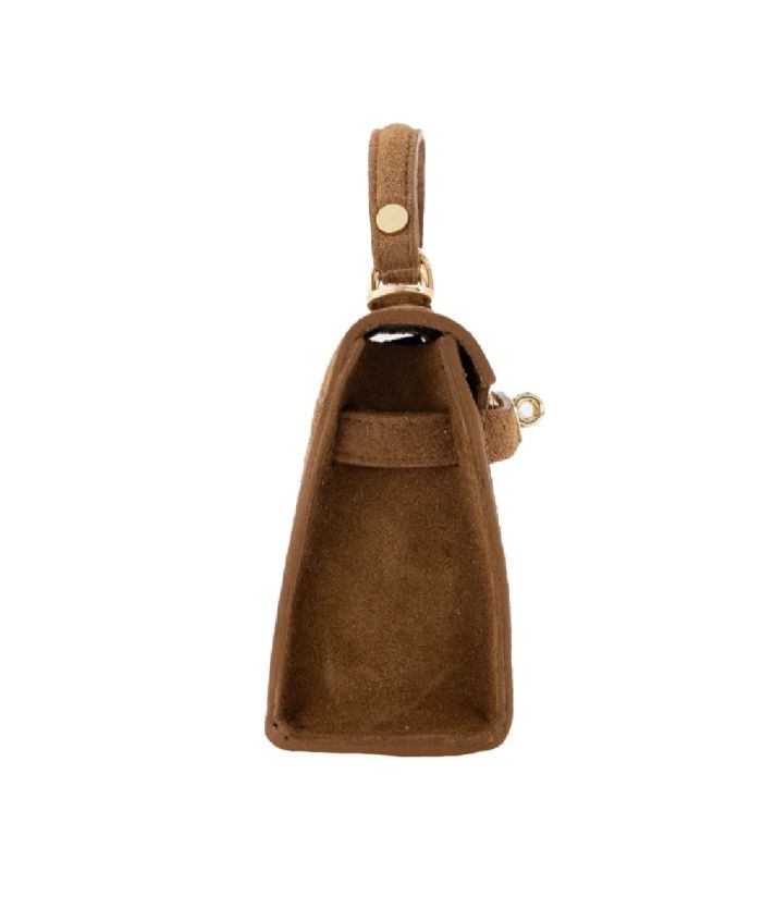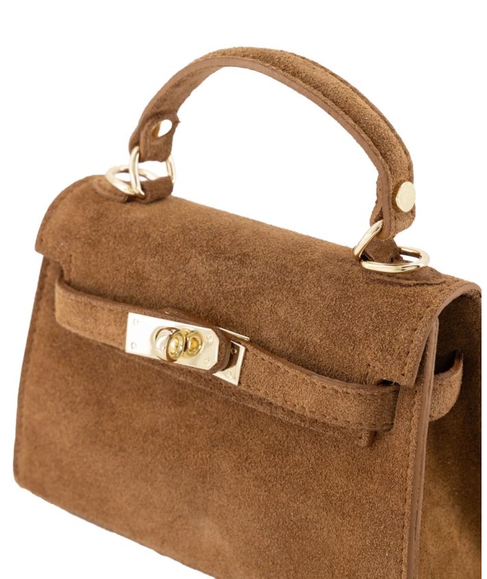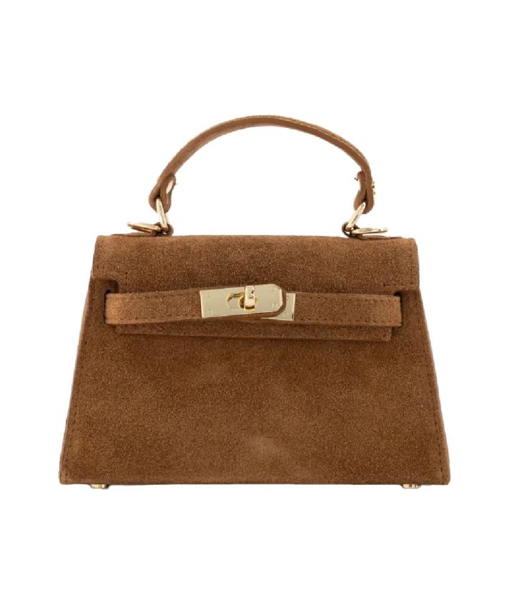 De handtas Livia is vervaardigd van hoogwaardig echt suède leer en straalt tijdloze elegantie uit. Op de voorkant is de tas voorzien van een stijlvolle draaisluiting, afgewerkt met goudkleurige hardware voor een verfijnde uitstraling.Dankzij het afneembare en verstelbare hengsel kan de tas zowel in de hand als crossbody gedragen worden – ideaal voor dagelijks gebruik of een avondje uit.