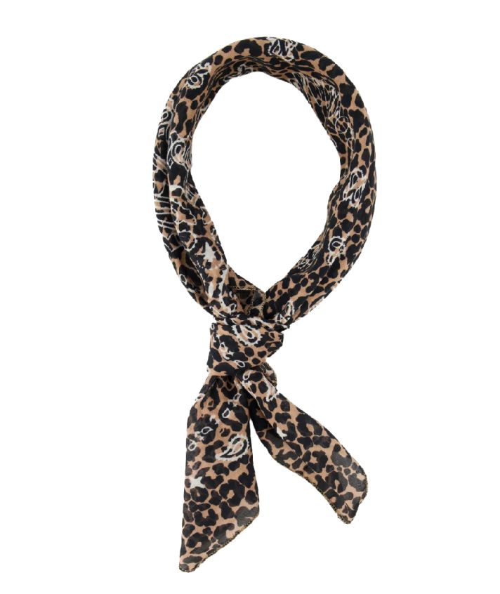 Een echt statement piece: dit sjaaltje met luipaard- en paisleyprint is vervaardigd uit een hoogwaardige mix van zijde en katoen. Draag het als halsdoek, haarband of stijlvol accessoire aan je tas – een veelzijdig en trendy detail dat elke outfit net dat beetje extra geeft.
