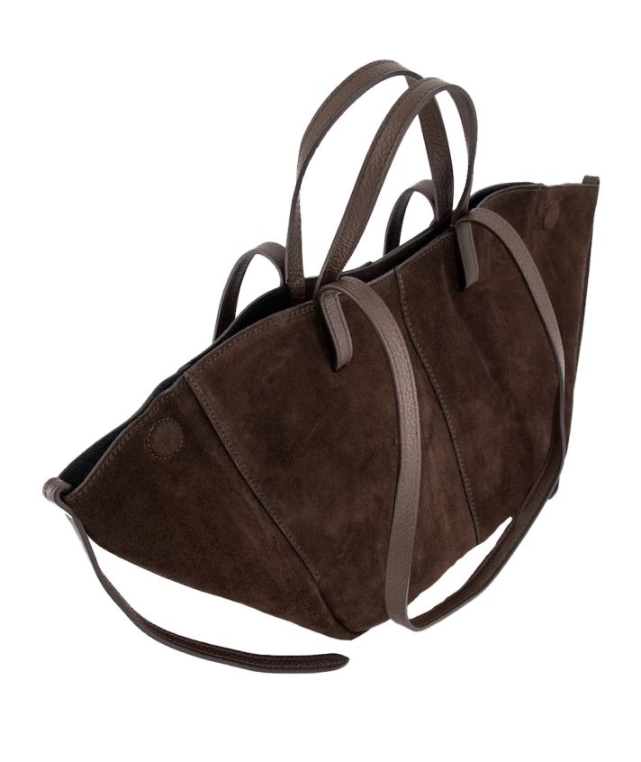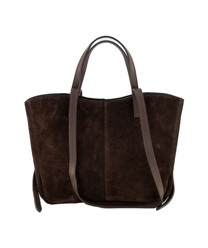 De Olivia Schoudertas in de kleur donkerbruin combineert elegantie en veelzijdigheid. Gemaakt van 100% echt leer, met een prachtige mix van suède en grain leer, straalt deze tas luxe en duurzaamheid uit. Dankzij de handige magneetjes aan de zijkanten kun je de tas op twee manieren dragen: ruim en nonchalant of compacter en strak. Perfect voor elke gelegenheid!Draag haar comfortabel over de schouder of als stijlvolle handtas. De bovenlengte van de tas is 52 cm wanneer ze volledig is uitgeklapt. Een tijdloos accessoire dat niet mag ontbreken in je garderobe.