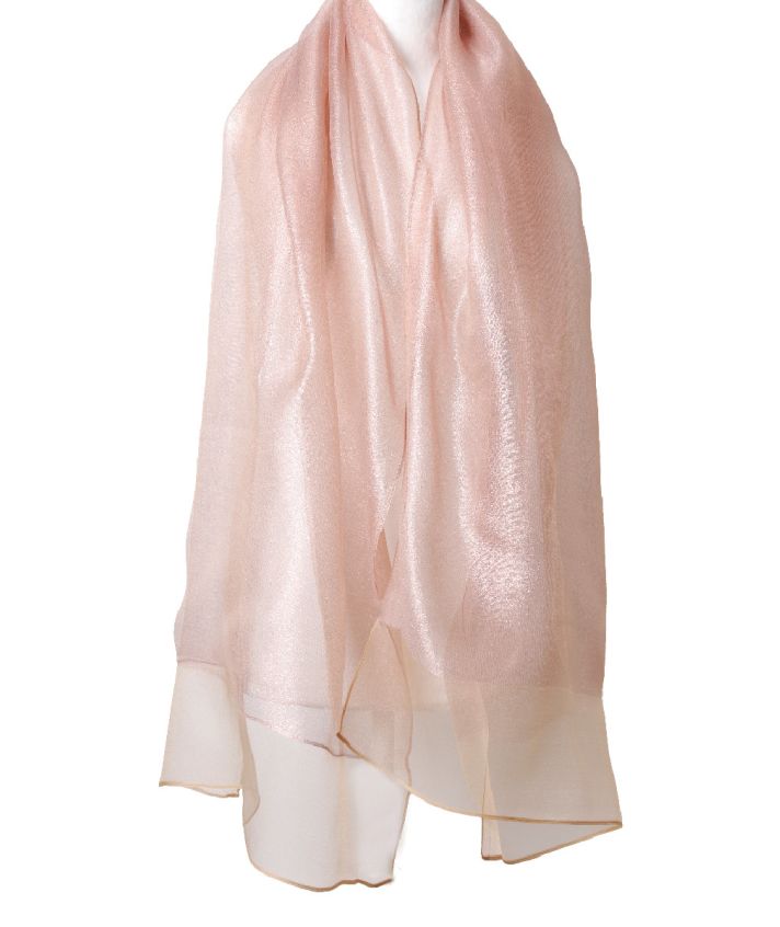 Deze elegante stola is vervaardigd uit een luxe zijdeblend en subtiel verweven met een fijn roze lurexdraad. Het lichte glittereffect zorgt voor een verfijnde glans.