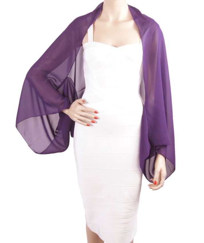 Bolero stola van soepelvallende effen paarse crêpe voile.