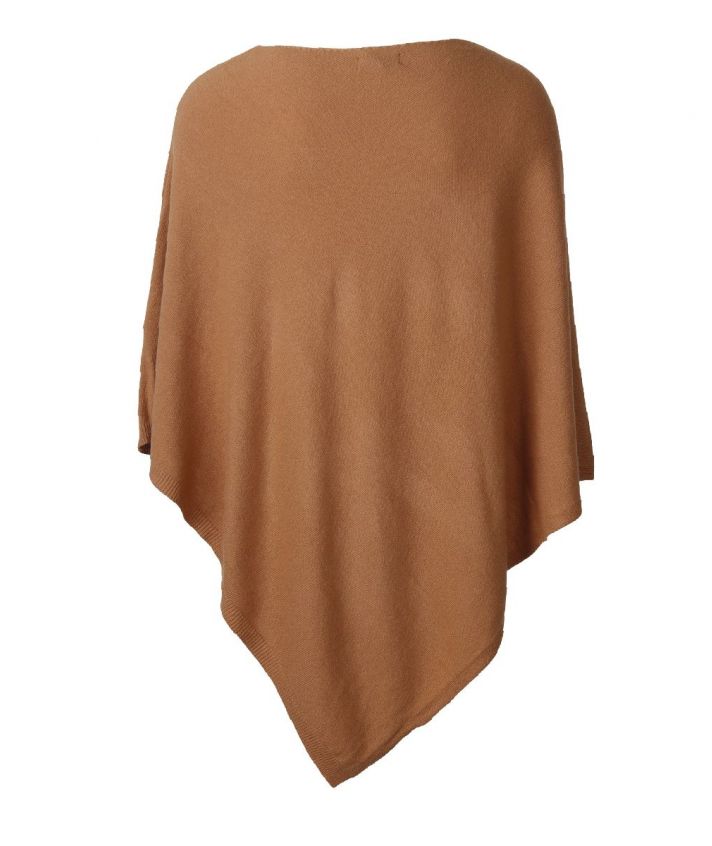Camelkleurige poncho met ronde hals, vervaardigd uit hoogwaardige materialen zoals premium-kasjmier, wol en viscose. Deze stijlvolle keuze straalt zowel comfort als klasse uit.