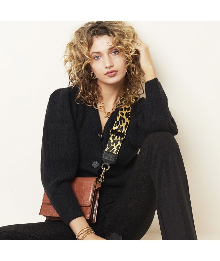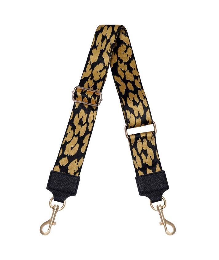 Schouderband met panterprint in zwart en goud. Pimp jouw tasje met deze leuke schouderband.