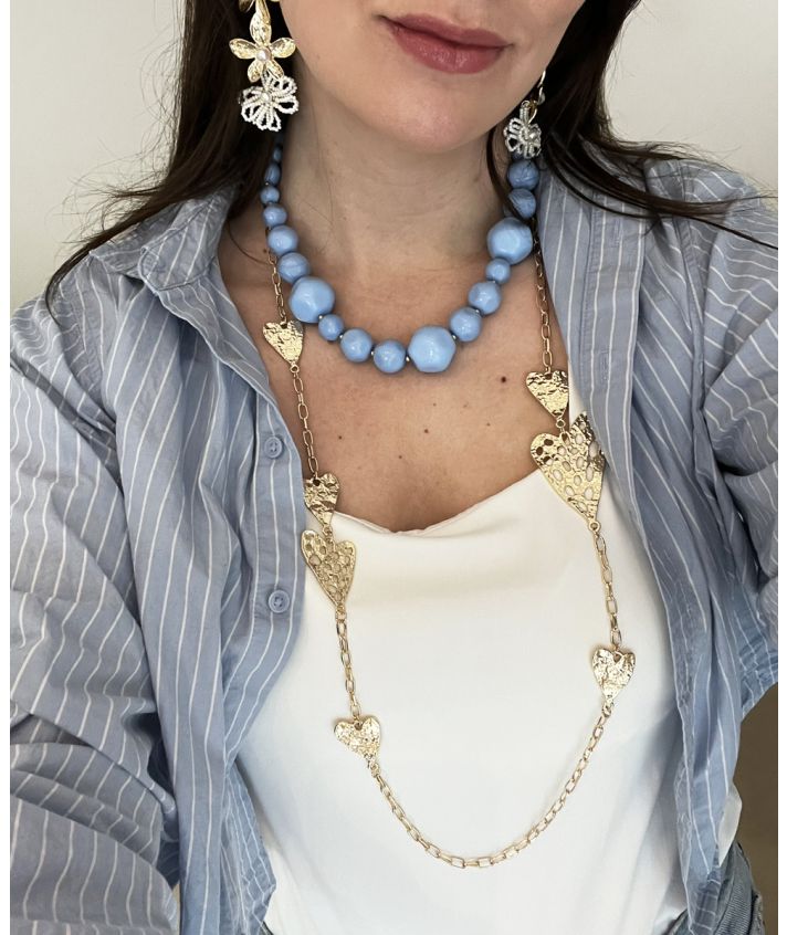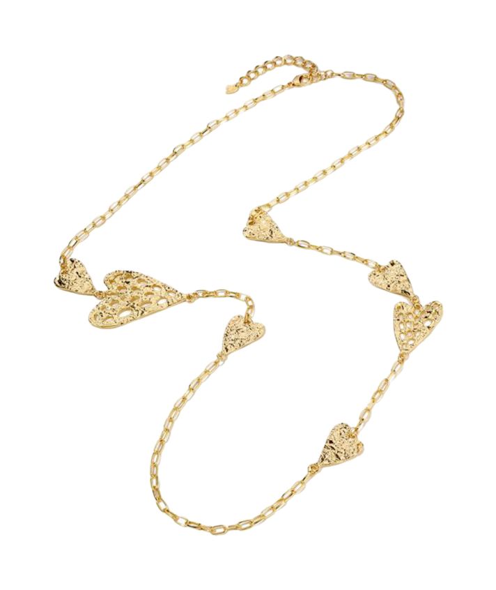 Opvallende, lange statementketting met speelse hartjesdetails. Het unieke design geeft elke outfit een vrouwelijke en krachtige uitstraling. Gemaakt van hoogwaardig stainless steel, kleurvast en duurzaam. Perfect als eyecatcher op een eenvoudige top of jurk, of als extra accent in een gelaagde look.