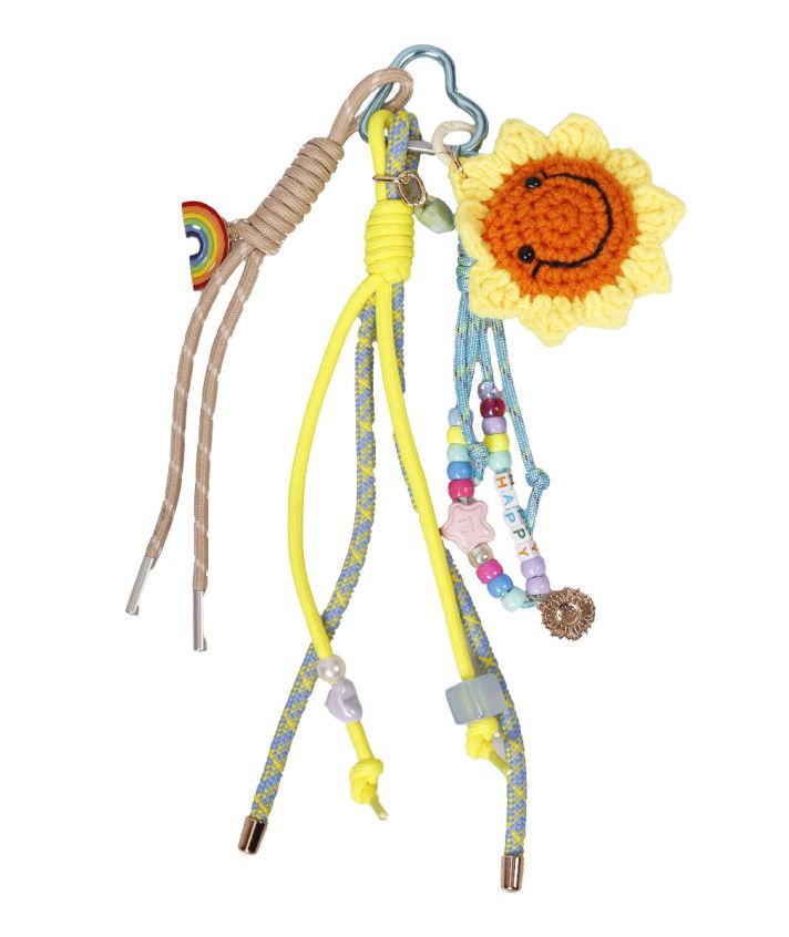 Deze unieke tashanger combineert kleurrijke koordjes en bedels met een vrolijk gehaakte zon. Het speelse ontwerp maakt je tas een echte blikvanger en voegt een vrolijke, handgemaakte uitstraling toe. Ook ideaal als sleutelhanger!