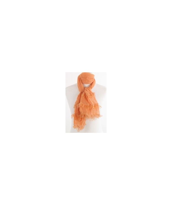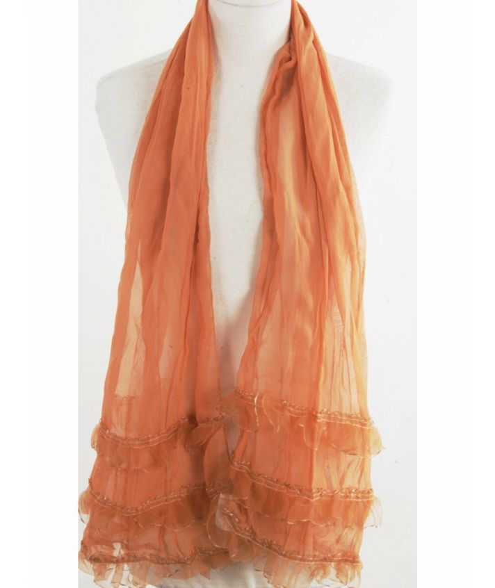 Voile sjaal in zacht cognac, met organza ruches.