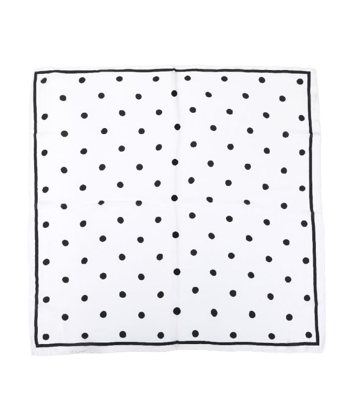 Elegant en stijlvol: dit witte satijnen sjaaltje met speelse stippen is het perfecte accessoire om je look een verfijnde twist te geven. De zachte, glanzende satijnstof voelt heerlijk aan en valt soepel om je hals, haar of tas.