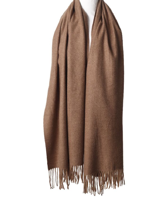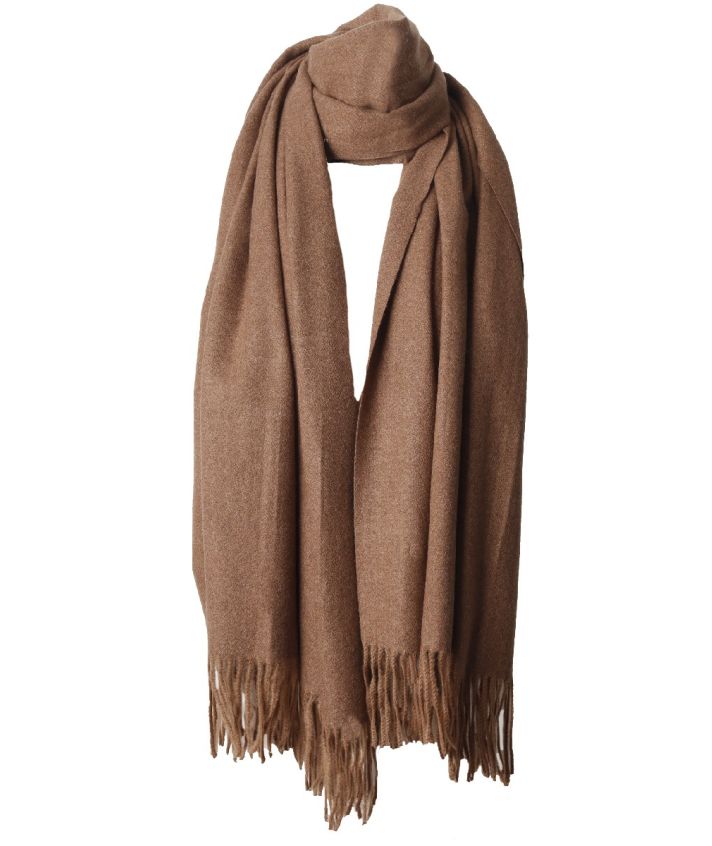 Deze fijngeweven sjaal in lichtbruin met subtiele franjes is een echte must-have. De mix van wol, viscose en kasjmier maakt hem heerlijk zacht, warm en prikt niet. Een tijdloze accessoire die je outfit moeiteloos een luxe uitstraling geeft.