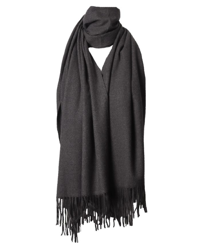 Deze fijngeweven sjaal in donkergrijs met subtiele franjes is een echte must-have. De mix van wol, viscose en kasjmier maakt hem heerlijk zacht, warm en prikt niet. Een tijdloze accessoire die je outfit moeiteloos een luxe uitstraling geeft.