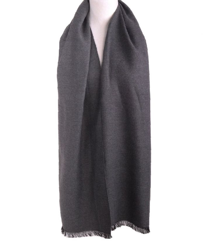 Wol-blend sjaal in donker en lichtgrijs met korte rafel franje. De herensjaal is een perfecte aanwinst voor de stijlvolle man. Deze sjaal is gemaakt van natuurlijke materialen (viscose en wol) waardoor de sjaal zacht aan voelt.