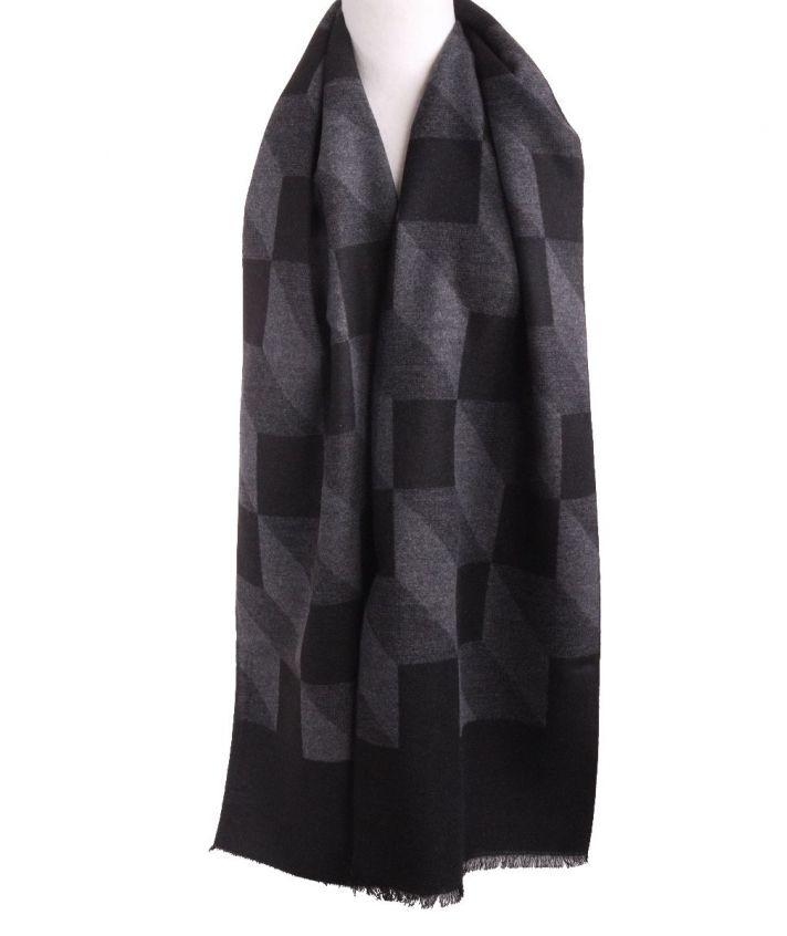 Wol-blend sjaal met grafisch print in grijs en zwart . De herensjaal is een perfecte aanwinst voor de stijlvolle man. Deze sjaal is gemaakt van natuurlijke materialen (viscose en wol) waardoor de sjaal zacht aan voelt.